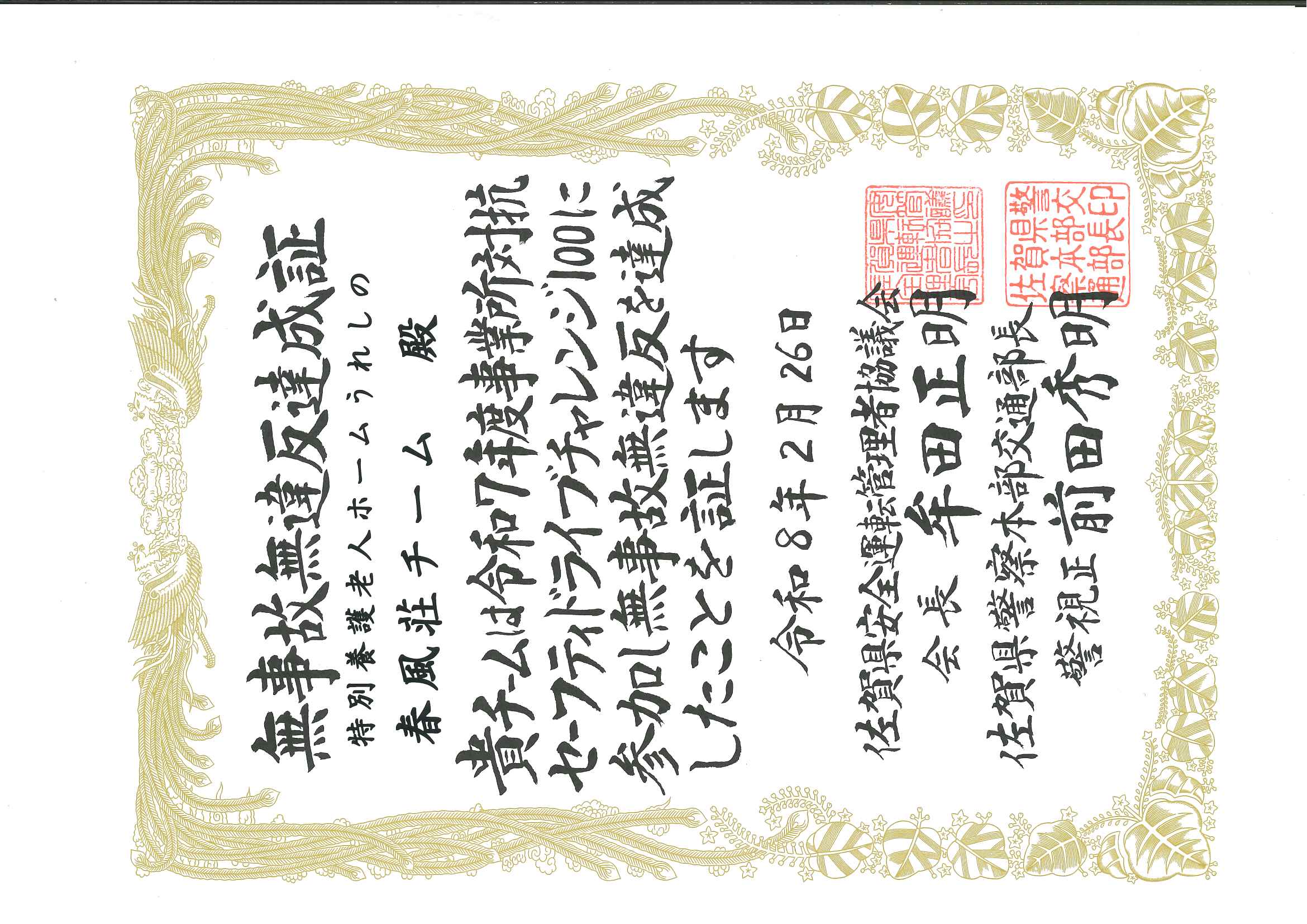 両チームとも、期間中無事故無違反を達成し、「無事故無違反達成賞」をいただきました。