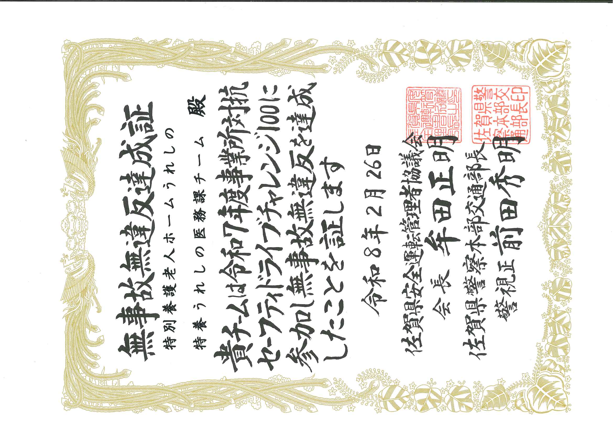 両チームとも、期間中無事故無違反を達成し、「無事故無違反達成賞」をいただきました。
